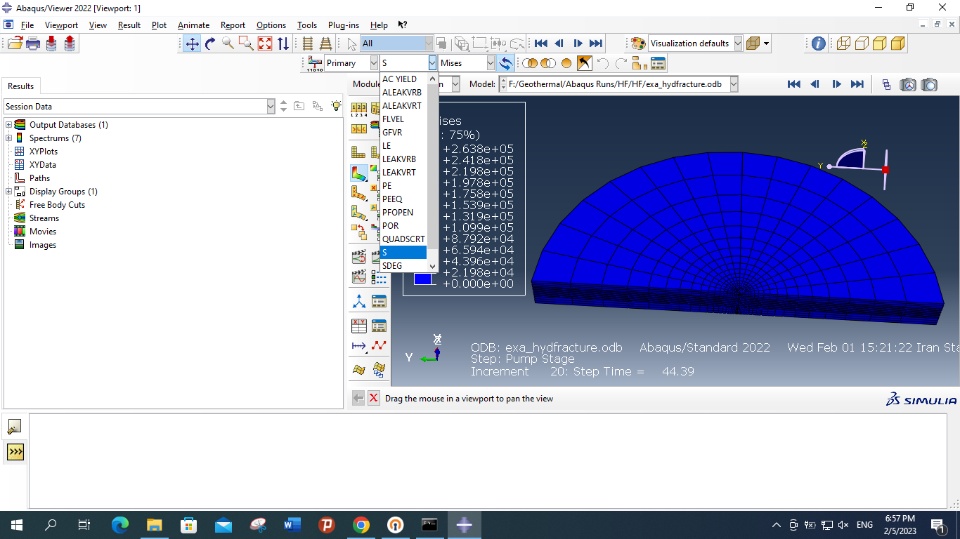 I ran a file from Abaqus example problems about hydraulic fracturing and the run is complete but I can't see the fracture path inside the porous medium. Any help would be appreciated