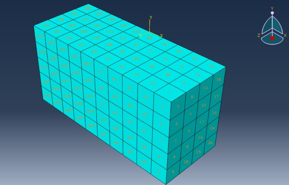 Dear Friends, I am looking for some advice about how to write a loop in Python for selecting some selecting specific element activation or deactivation (or unit element selection ) from region in correspond to specific step in Abaqus. to be short Python script for first generate number of step , then has to select corresponding element from mesh. there is picture in attachment shown below, which has element label on it from 1 to 196 per say. the script has to generate first ,number of step, which is working, then in the second step has to have another loop for selecting elements one by one. or example, at first step has to select element number 1 to activate or deactivate it, then in corresponding to second step, it has to select element number 2 to activate or deactivate it, the has to continue till the end step. your help is very much appreciated. thanks