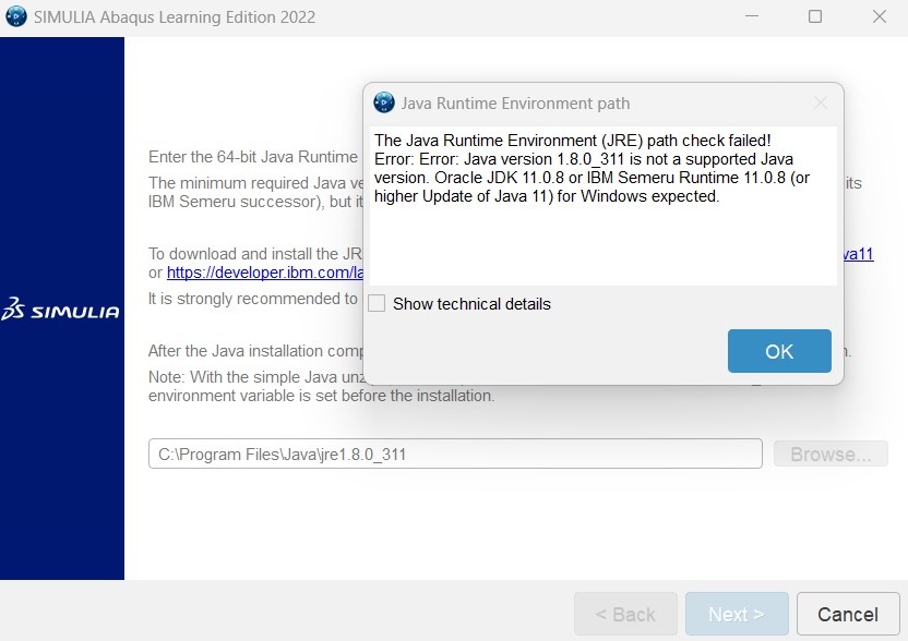 I am trying to install Abaqus. I have installed Java, but during the installation process it shows the following error. Could anyone helpe me?