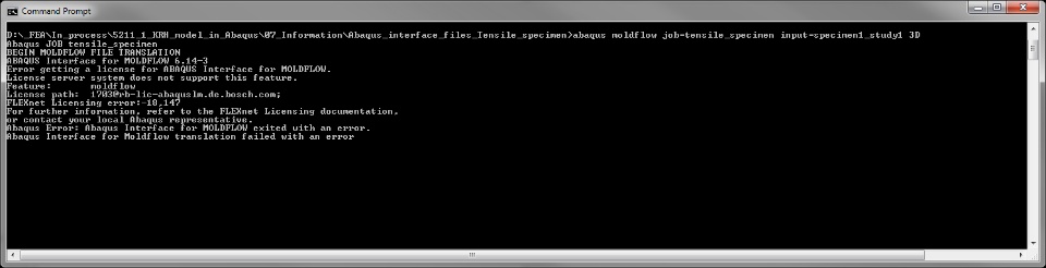 I would like to ask if someone has experience with transfer of data from Moldflow to Abaqus. I need to transfer residual stresses from Moldflow analysis into Abaqus. I followed instructions for this interface from Abaqus 6.14 Documentation (see picture 1 in Appendix) but an "Error getting a licence for Abaqus Interface for Moldflow" appeared (see picture 2 in Appendix).