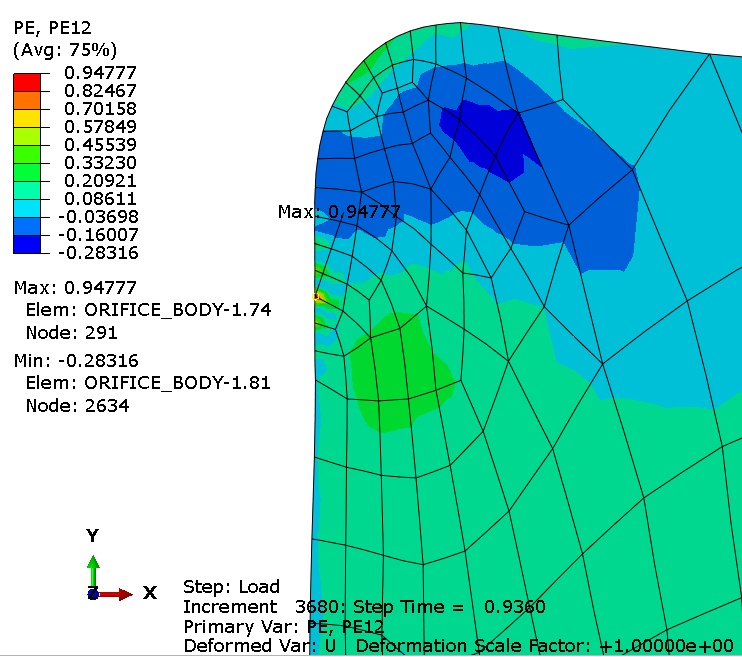 I am reaching value of 29 of PEEQ at some spots, so I wondered how components of PE tensor look like. But I am getting PE11= -0.39, PE12=0.94, PE22=0.3 and PE33=0.09. When doing simple math with calculator (sqrt(2)/3 times sqrt (PEij*PEij) I am definitely not getting value of 29.
