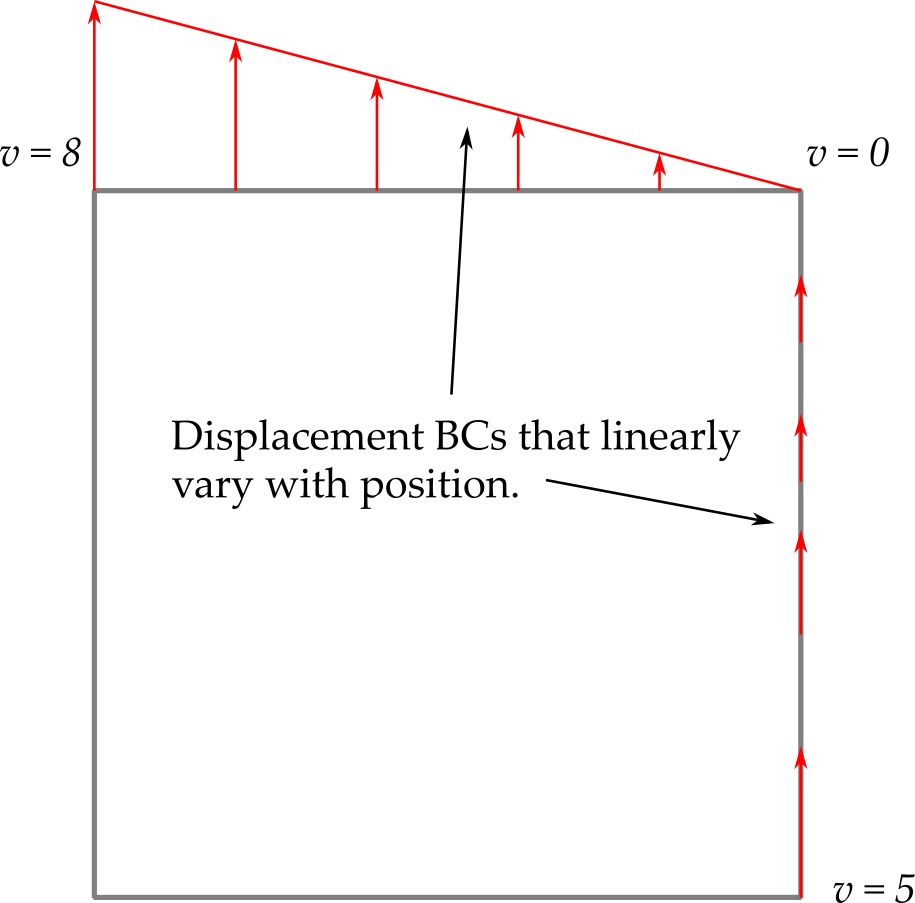 I am running into precision issues with displacement boundary conditions created via analytical expression fields. For example: I have a square domain with two displacement boundary conditions on adjacent edges (shown graphically in the attached figure). At the common corner node, both expression fields mathematically resolve to v=0. However, sometimes, the boundary condition for one expression at this node resolves to a "numerical zero" (2.22E-16). This discrepancy between one displacement BC of 0, and another of 2.22E-16 at the same node leads to an ErrNodeBCRedundantDof error message, obviously (Abaqus is powerful, but it can't split atoms).