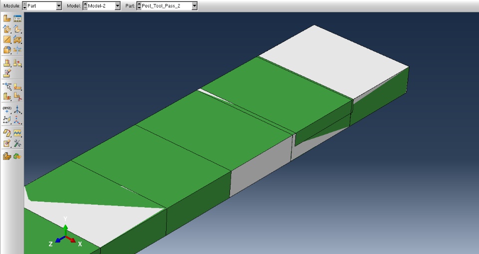 I have a simulation where I construct a part by doing a boolean cut operation using two other parts. When I view the resulting part, I'm seeing some graphical oddities. As I zoom in while in the Part module, the coloring of the part changes. See the attached pictures - there are splotches of green and grey which change shape/location as I zoom in. It also appears that the chunk of the part which is supposed to be removed due to the boolean cut operation is not being removed from the part. When I hover my mouse over the chunk of the part which is supposed to be removed, my mouse highlights faces which would only be highlighted if that chunk of the part was actually removed. This makes me think that the chunk of the part has been removed logically, but there is some issue with the graphics system and it is still being displayed.