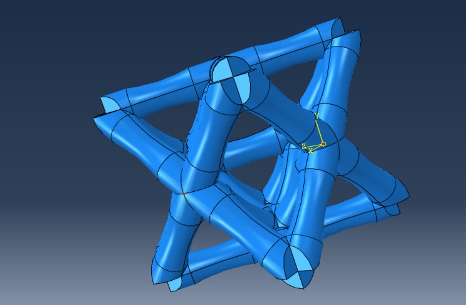 My geometry is composed of several struts with same shape and length. When I want to merge them as a part in assembly module, Abaqus removed one of the struts and merge the others. It gives a warning that part cannot be merged. Can anyone help me? (In picture the strut between two red points is removed)