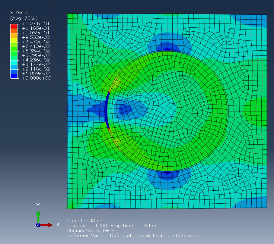 I am still trying to model a unit cell with a fibre and an interlayer. Since I am having convergence issues I was taking a step back and took a look at the interface again.