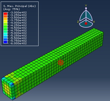 I created a beam and added a layer of zero thickness cohesive elements in the center. The beam is being ran in implicit and in compression.