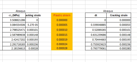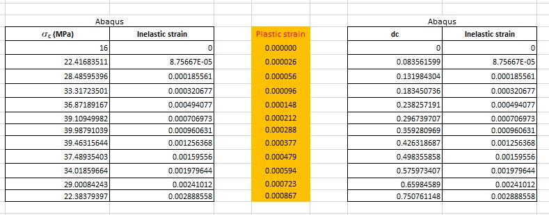 2. When I changed the bc and bt value to make compression damage parameter and tension damage parameter larger approaching to 85%, 90%, and 95%, the program is aborted by error increment at 1e-35; however, my increment size in (minimum 1e-100). See the images.