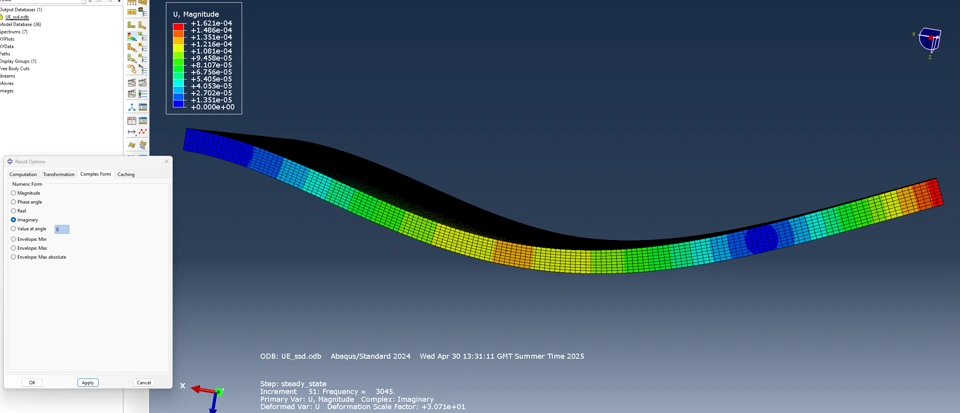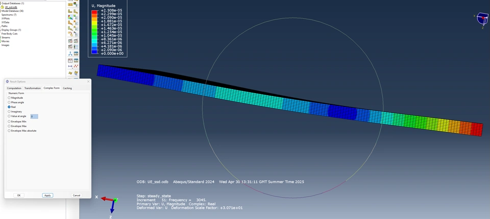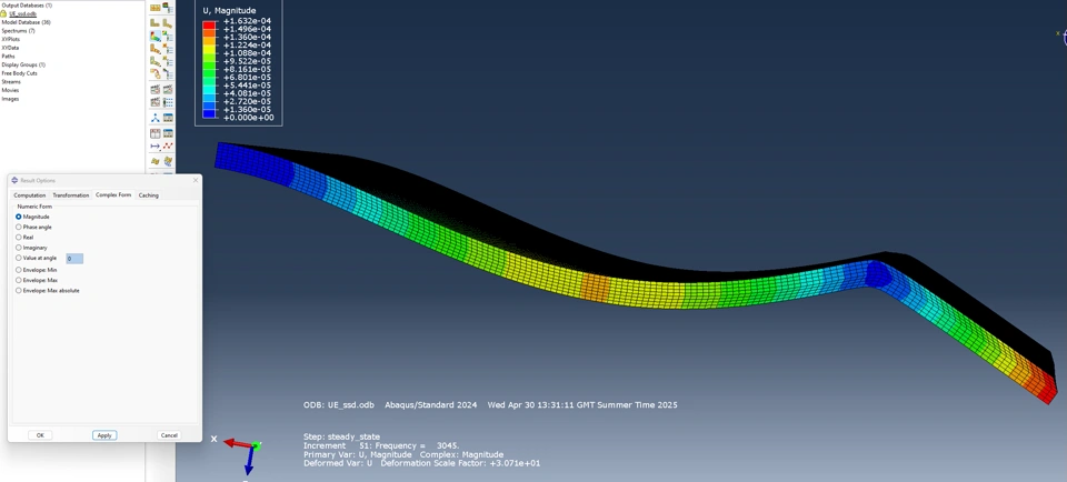 When we carry out the steady state, if i choose the magnitude option in complex results, the mode shapes are a bit distorted. If I select the real/ imaginary results, the shape looks like the modal analysis results.