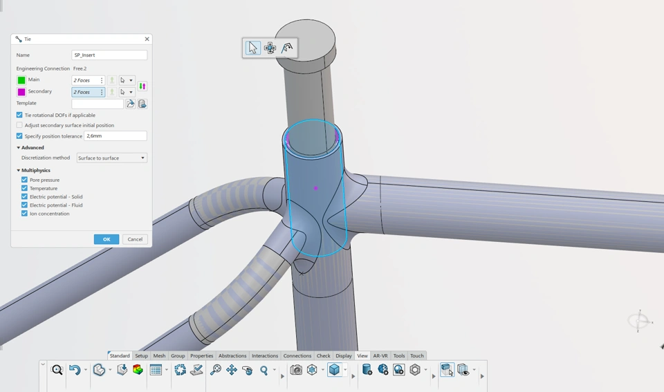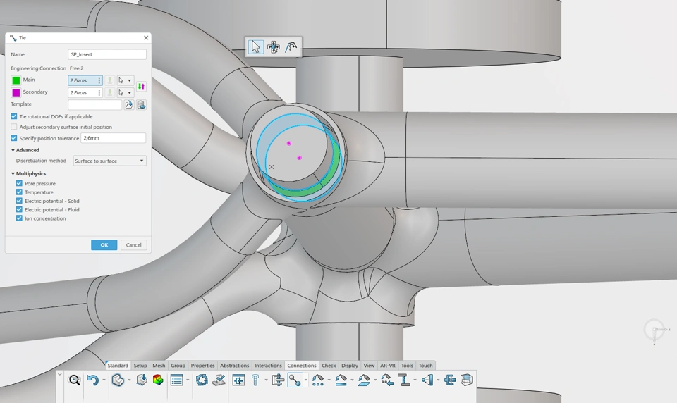 - Tied connections with a specified tolerance (matching the gap between surfaces).