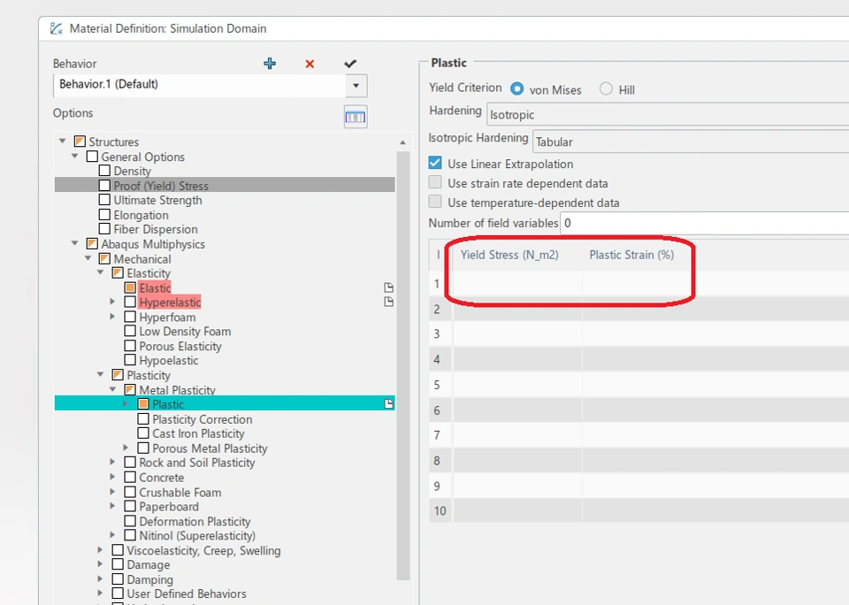 I am creating a few new materials. I have my yield stresses in U.S. Customary System (Psi). Is there a way to avoid converting them to N_m2? I also noticed the "Plastic Strain" takes only 3 decimal digits afterwards. Is there a way I increase the significant digits?