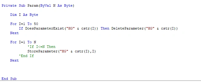 However, as you can see, the 'End Sub' statement for my main subroutine does exist. I changed the Param(N) To Call Param(N) or Call Param N but none of them works fine. In addition, I put the MsgBox Str(N) before Param N, But in History window, when I click on the Update button, nothing is shown.