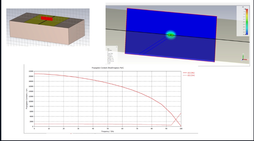 I am trying to understand how the line impedance calculation works in CST Studio Suite, and for that I have tried to replicate the measurements done in [1], as in the image below. To do that, I created the model you can see below. It is simple 3 silver metal strips on top of a GaAs substrate. My goal is to replicate the results with the assumption of QTEM modes and thus validity of the transmission line model. In line with a previous discussion in 3DSwym CST - How to use CST as a 2D mode solver for quasi-TEM transmission line analysis, I use the time domain solver and use the "Calculate Port modes only" with the "Inhomogeneity port accuracy enhancement" enabled. I also make sure to use a fine mesh in the thin metals. I have made sure to define a waveguide port that has the mode well confined and also used a fine starting mesh to ensure convergence. I also used symmetry for the odd mode to speed things up. However as you can see the results are very odd and I cannot understand why. A big contributor I suspect has to do with not knowing how the 1D results depend on the waveguide port definition. Indeed, when I put a waveguide port enclosing all the plates as you can see below, I get a multimode solution and, in fact, the solver terminates abnormally when I let the port have 3 modes and with 2 modes it finishes but does not calculate line impedance for the mode of interest (the one in picture below). If anyone could chime in on this topic or point to resources I would be grateful.