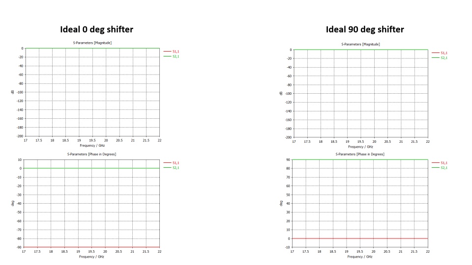the S parameter of the ideal phase shifters used are shown for your reference.