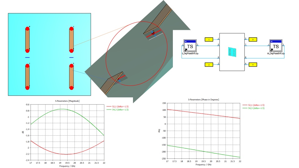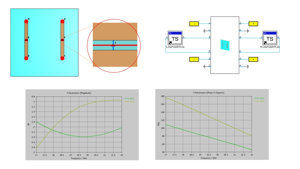 i repeated the experiment 2 times, one time inserting the phase shifter between the two pins of a series face differential port and the second time i insert the phase shifter between two single pins discrete ports.