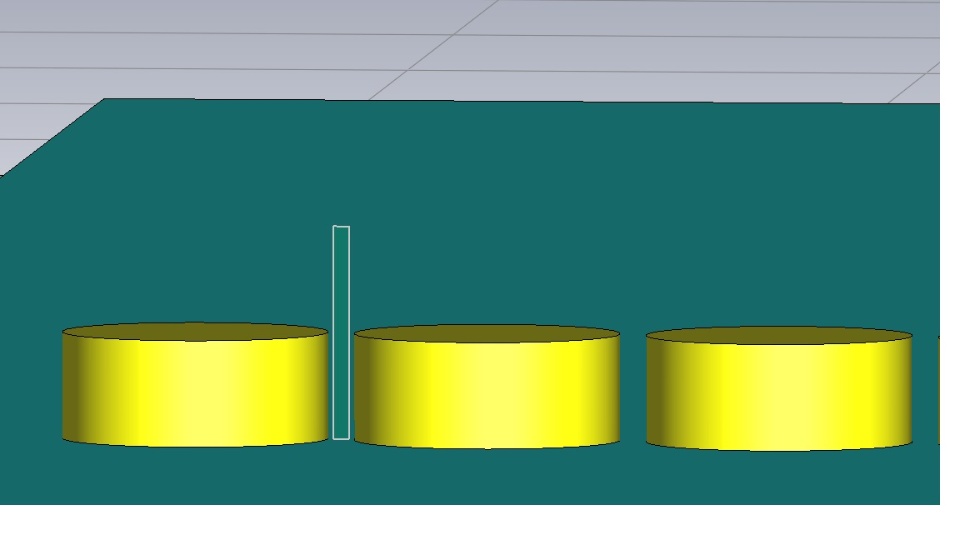 I want to plot the colormap of the E-field distribution over a surface at a specific time instant (2.1us) using CST MWS. The diagram for my setup is attached here. As seen from the 1st fig., I have two parallel plates, the top plate(+1V) & bottom plate(0V, ie, ground). There is a dielectric slab on top of the ground plate and 31 metallic cylindrical buttons on top of it. The excitation is a double exponential signal. After simulation, an E-field is generated. As shown in the 2nd figure, I want to calculate the distribution of E-field in the gap between 2 metallic buttons. Thus, I created a 3-D polygon and made a face from the curve. Now, can anyone help me calculate the distribution of the E-field strength in the gap between the two metal buttons represented in the form of a colormap at a particular time instant (2.1us)? I looked in the CST studio's post-processing section but couldn't get the desired results. Please let me know if somebody has any ideas about how to proceed. Thanks.
