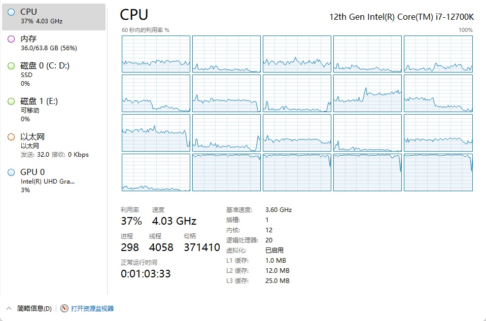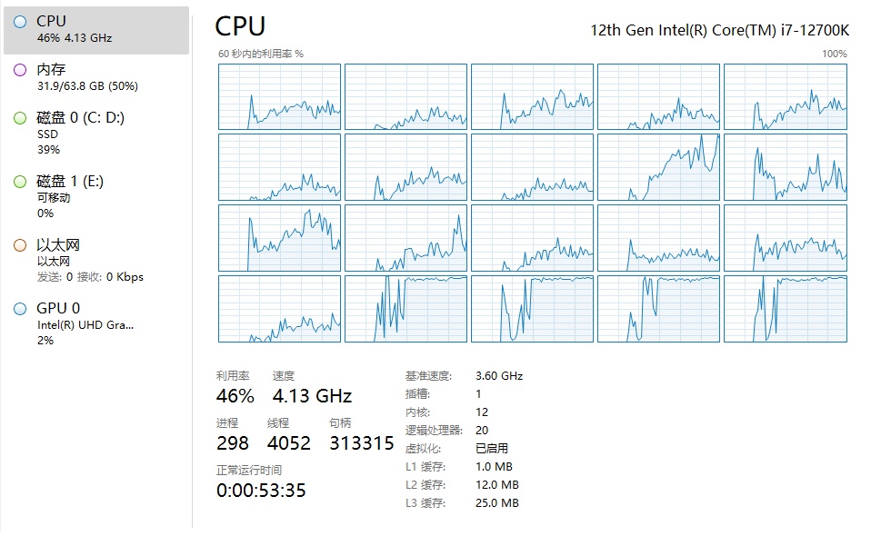 CPU: intel 12700K (8 Performance-cores + 4 Efficient-cores)