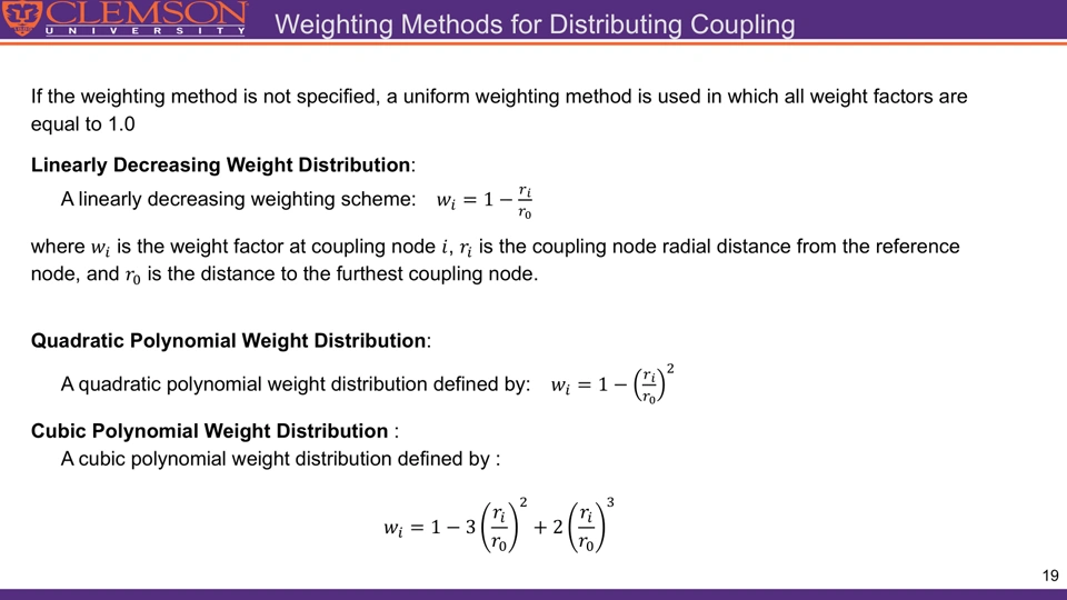 Or is there any way to validate this theory of weight distribution I got from the Abaqus documentation? For some cases the summation of weight factors is getting greater than 1 in linear weighting method which is should not be. So I am searching madly how can I solve this issue. Please help me someone!