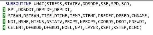 However, it is indicated in all the lines of the body of the UMAT user subroutine which is provided by Abaqus, so it should not give error (since I have not modified them).