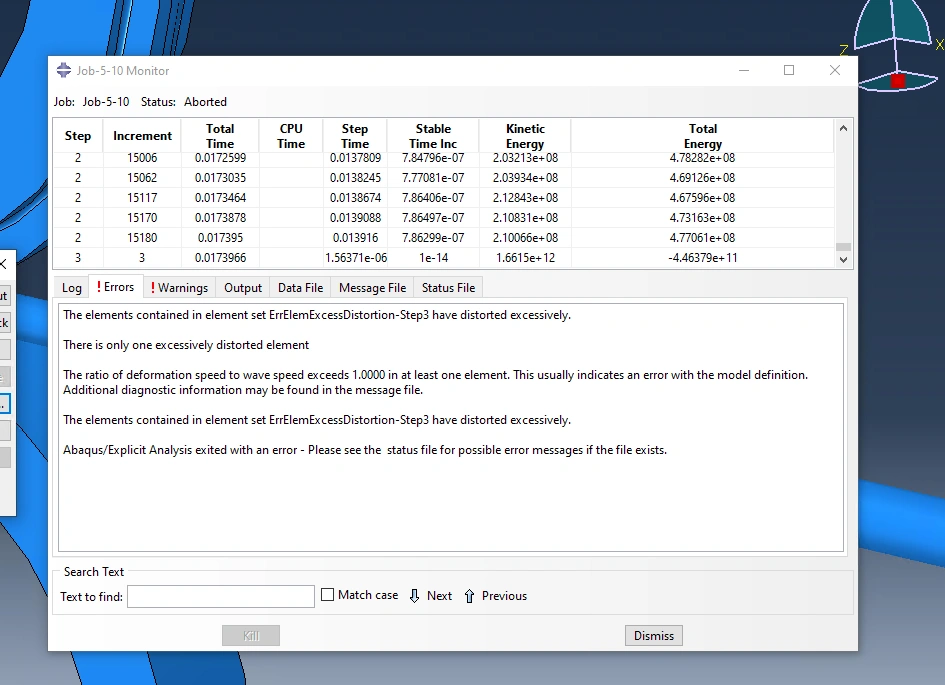 However in step 3, the "Stable time increment" dropped suddenly to 1e-14 (as shown in the pic).