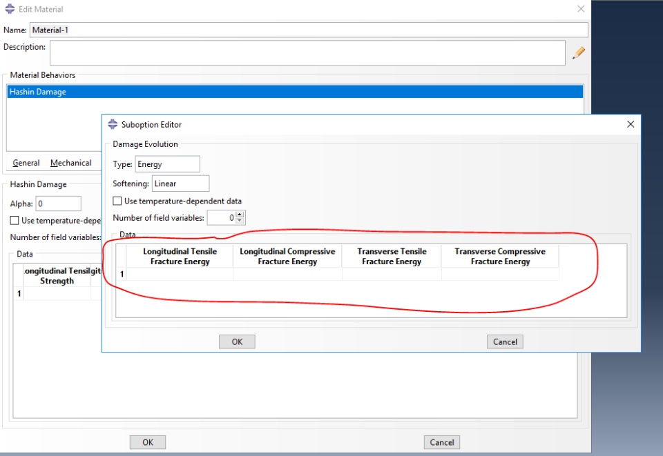 For the damage evolution in Hashin Damage Model in Abaqus, we need give the fracture energy value.