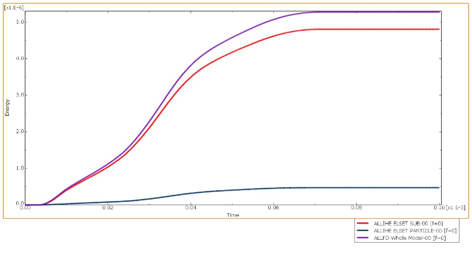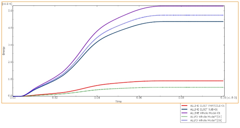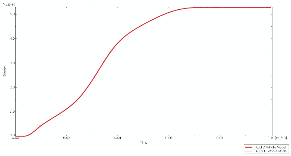 In figure 1, Internal heat energy increase of the entire model is identical with the friction dissipation. This proves fraction of dissipated energy converted into heat, η=1, and only heat source in the system is friction.