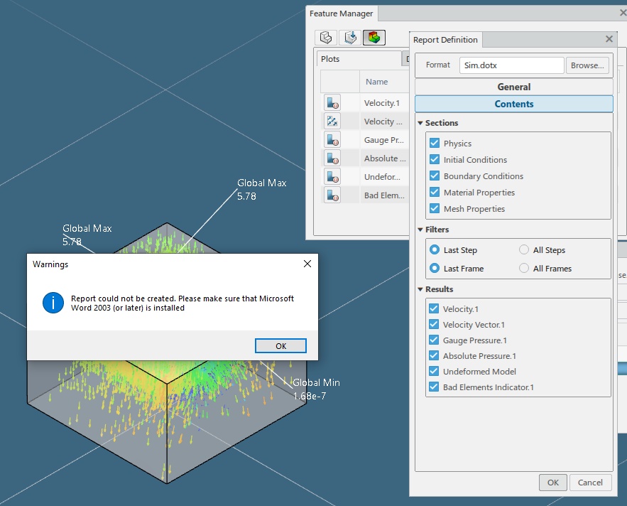 When I try to generate a report from a fluid scenario using the supplied templates I get an error re having WORD installed. It always worked in previous versions. But even then it stopped generating images automatically.