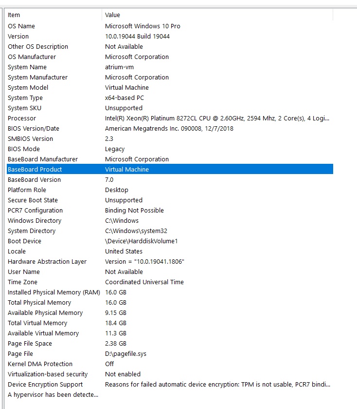 The workstation runs inside a VM with 16 Gb of ram and Xeon 8272CL CPU.