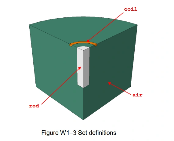 I'm struggling to make the geometry match what's shown in the PDF—specifically the 1/8th symmetry domain and the rectangular coil around the rod.