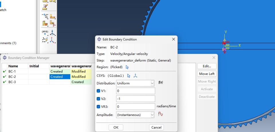 However, I want to modify the profile of the cam, so that the profile is not a common geometry element. Therefore, I should've used equation curve, but abaqus does not support this funcion. so I used secondary development, using a series of short lines to approach the profile.
