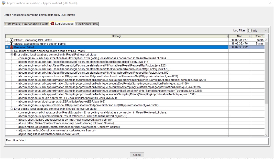 I have checked that the input and output files are correct, and that the Abaqus Execution Command Line is normal. When I try to initialize a simple DOE, the execution error pops up almost instantly with the error. Please let me know if you have any suggestions :)