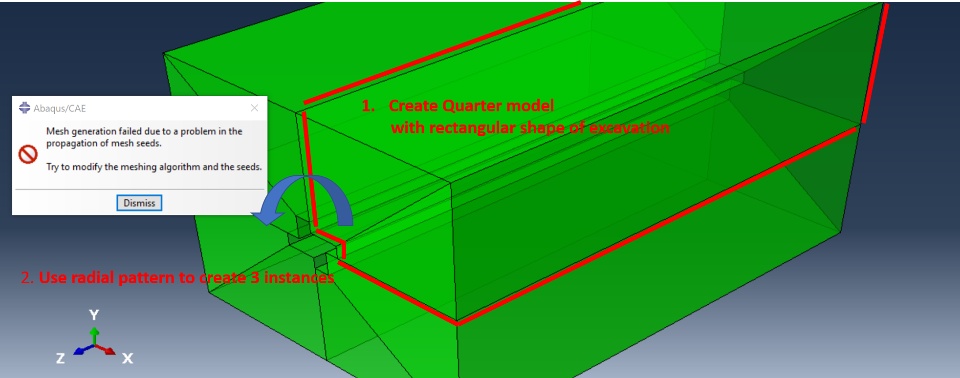 The error is "mesh generation failed due to a problem in the propagation of mesh seeds"
