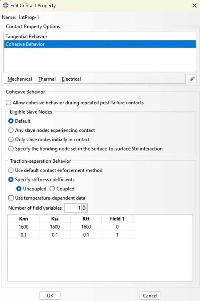I'm trying to define contact property with coheisve behavior and define the stiffness coefficients to be field-dependent. However, I cannot find any resources on how to update field variables during analysis. Which subroutine can I use to update the field variable here?