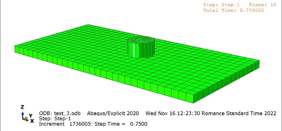 The objective of this simulation is to correctly model the contact between these two parts, to be applied in a more complex structure where all the parts are modelled with shells. That is why I have to use general contact in Abaqus/Explicit.