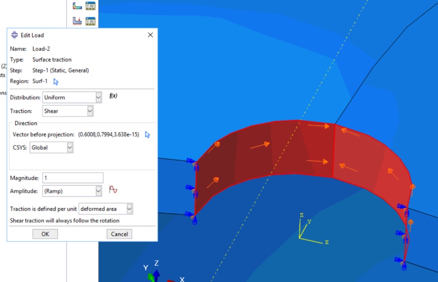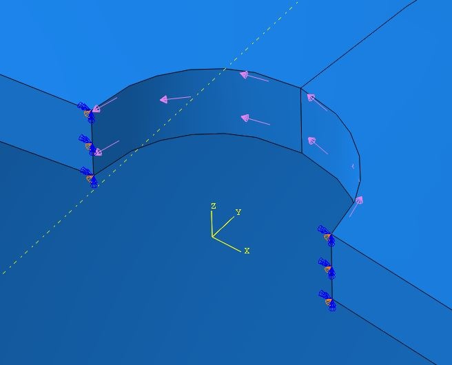 I have met a problem about applying torsional load on a annular surface show on the picture. From my understanding, only surface traction can possibly realize torsional load on a surface. However, so far I cannot find out how to make it a torsion in a full circle. I can only have it apply on half circle as in the first picture. If I mirror the model by ZX plane, the mirrored part will have a torsion in opposite direction. Does any one has any suggestions or should I use other load types?
