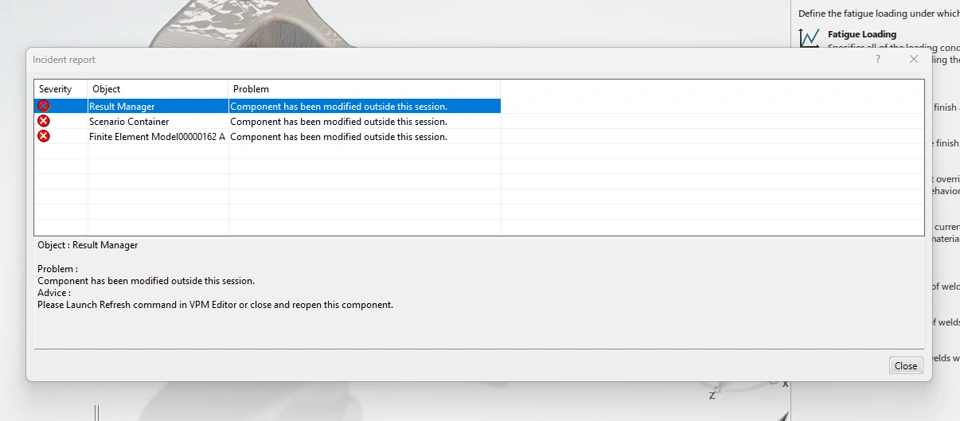 - I successfully ran a durability study and was trying to view the results. The system was trying to refresh to obtain the results. This went on for 20mins. I forced it to stop. It did not let me redo the sim or view the results after I stopped the refresh.