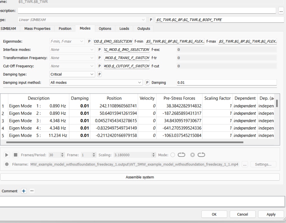 I noticed that the position and pre load forces affect the free decay of the wind turbine structure. I'm curious to know what should be the optimum value of both these parameters so that there is decay in both the directions X and Y.
