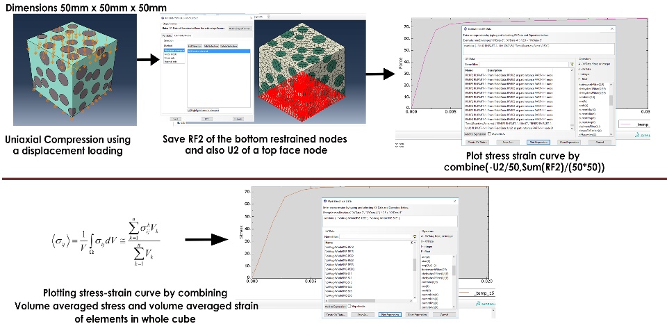 This is a composite with two different materials and sections with a size of 50mm x 50mm x 50mm. Uniaxial displacement loading is given and stress strain curve is obtained in two methods as shown. Looks like Both methods gives similar results.