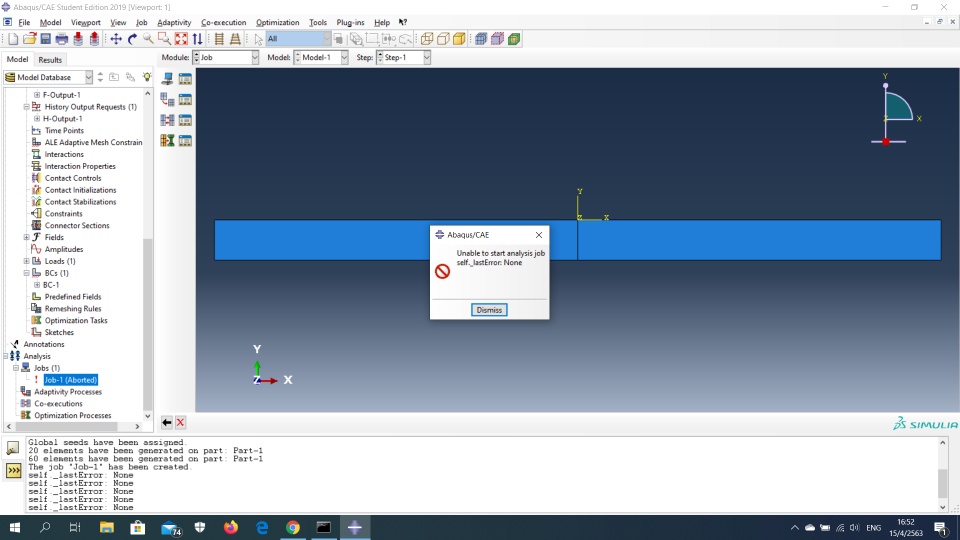 I drawing simple geometry and test to summit job but it error found as "Unable to start analysis job self.lastError: None".