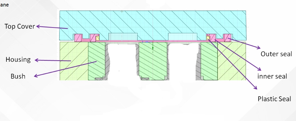 I am trying simulate compression in rubber seal. Let me explain my working condtion my parts consists of seal top cover, housing, seal, and bush. Intially seal rests on housing inner seal which 60% rests on housing and remaining on bush. There is height differenece of 0.07 mm between the housing and bush please refer to attached pics. When the top cover compress the seal the height differenece between the hosuing and bush should be observed in seal.