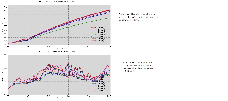 Another question is that I've seen in the literature that, in order to simulate the physical change of water, one needs to set the property → Equation of State → Us-Up. The recommended setting I received is C0 at 1450000 mm/s, and the other two parameters, 's' and 'Gamma0', are both set to 0. I experimented with giving C0 a much smaller value, such as 1 mm/s or 1450 mm/s, which significantly reduced the time required for the simulation. However, it also caused considerable variation in the results of the heat transfer analysis (as shown in Picture 2). I would really like to know how this setting (EoS-Us-Up) affects the analysis of temperature results and why it also changes the simulation speed. I would greatly appreciate it if you could answer my questions.