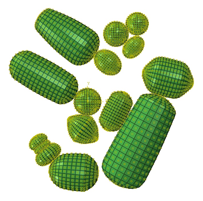 Note: the particles are not initially in contact