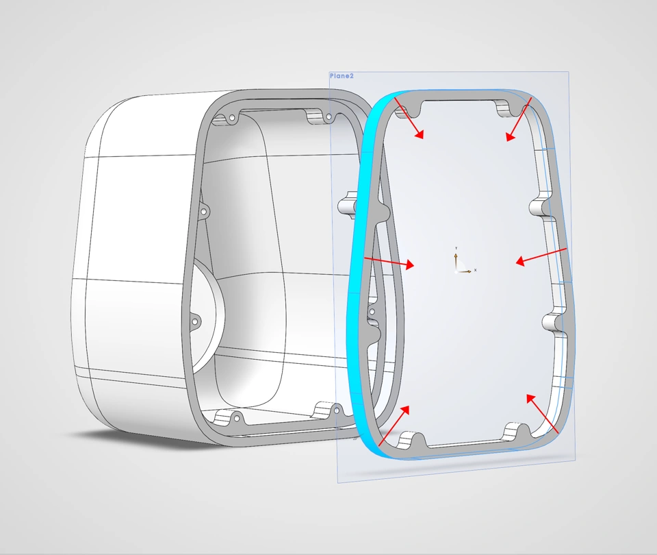 I created a new plane, selected the edges of the shape I want to use as a mate, converted the entities, and extruded the mating shape, but I anticipate it needs some clearance where the two surfaces will contact. I have not yet saved the new entity as a separate part. I have tried making some offsets to trim a small portion, but it is not working as I hoped.