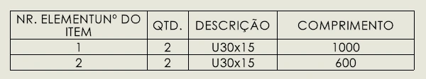 When generating the cut list in the drawing environment, the table is displayed as below: