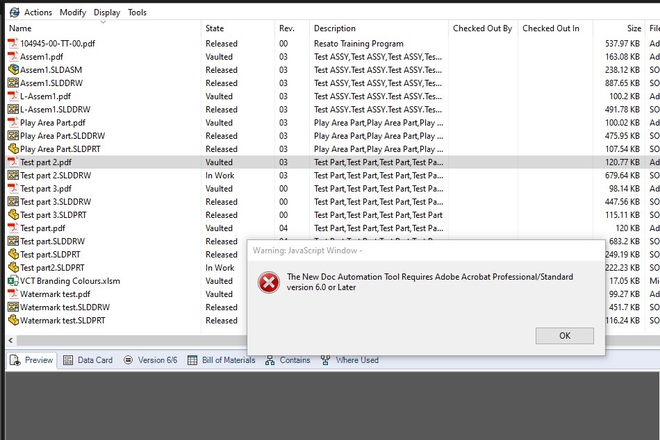 Every time I highlight a PDF file in the vault (i.e. just single click on it) the below "Warning: Javascript Window" always pops up and I have to "OK" it before it continues on to show me the PDF in the preview tab.