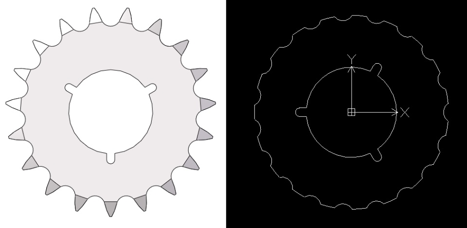 This system works really well but every so often we get caught out by a part that typically is a profile that has a machining process performed once laser cut. This means the "largest surface" doesn’t necessarily contain all the information needed to get in the raw pre-machined profile. An example image is attached of a laser cut sprocket where the teeth are cut off because they are chamfered which creates a break in the surface.