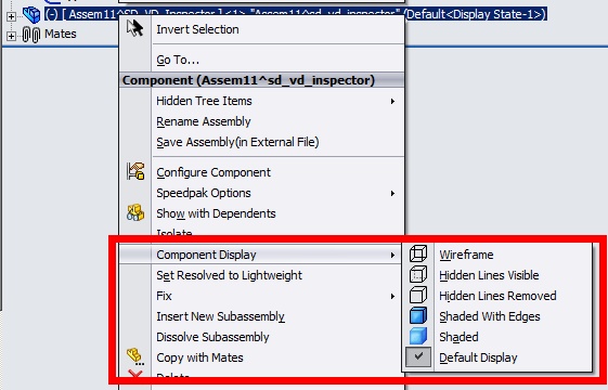 We need an API (in C#) to retrieve the component's current display mode (Wireframe, Hidden Lines, Shaded, etc.). The equivalent operation in application's UI is illustrated below.