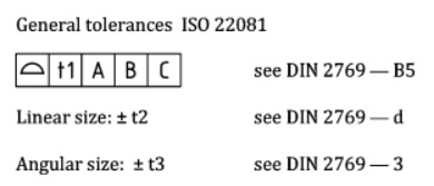 Hi guys, I am creating new part drawing templates for my company and we want to implement ISO 22081 with DIN 2769. The latter gives the following example for the description of the general tolerances: