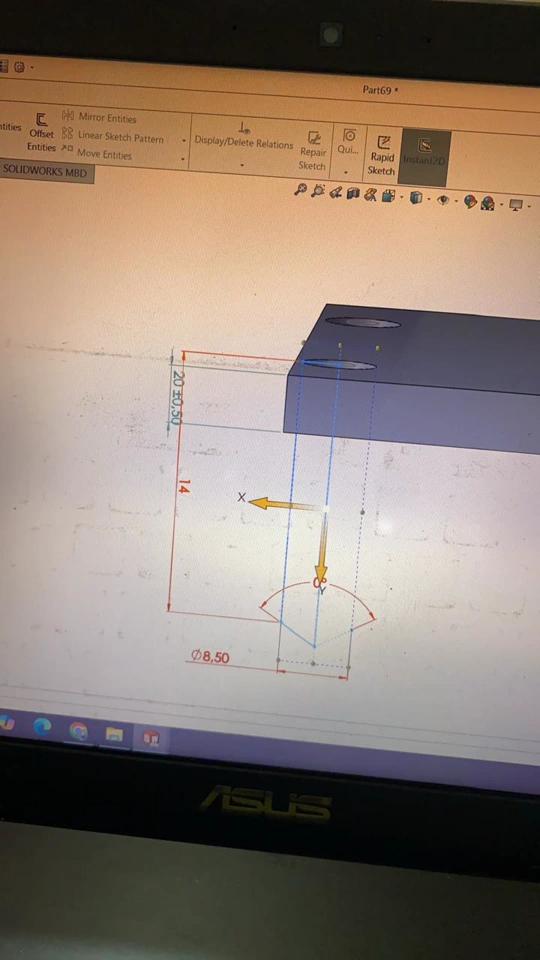 Hi, I am using VBA to create a hole wizard, but the size that should be 14mm is actually longer than 20mm.