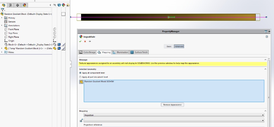 I have applied an appearance to an assembly file, the appearance is a colour gradient