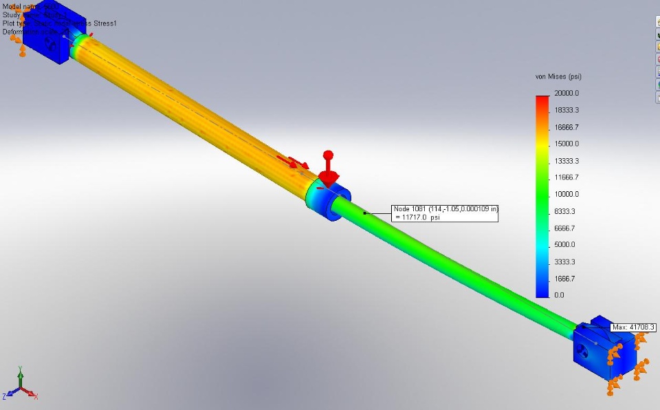 I ran the rod simulation with a 4.500" dia on the rod also &stresses were near 40,000 psi., so a 4.500 column the ext lengthdoesn't cut it, but a 5.160" does, and the cyl simulation with a4.500" rod is very close to the stresses in the 5.160" rod.